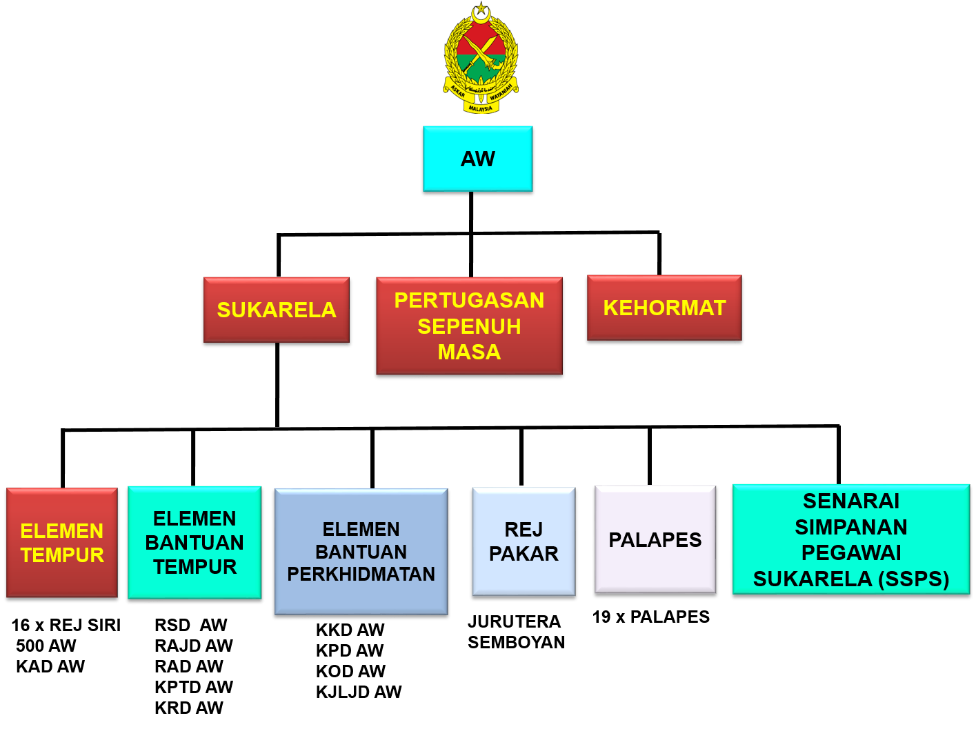 • Sasaran Penting. Keseluruhan unit ini dianggotai oleh pegawai dan anggota Kerahan AW diletakkan di bawah perintah Markas Formasi bgd.